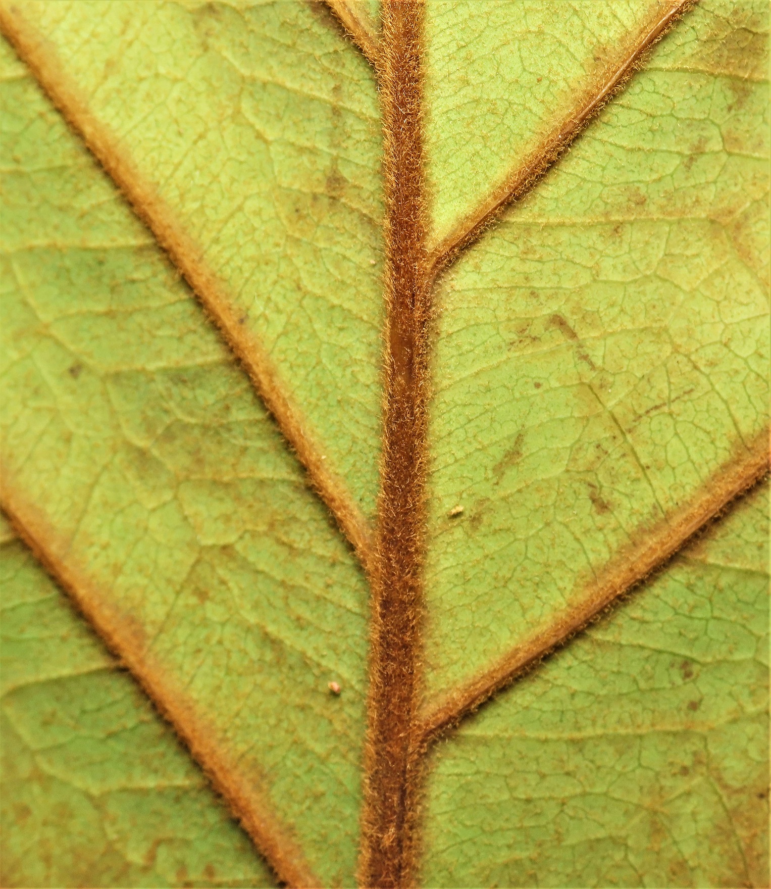 The undersurface of a Ficus forstenii juvenile leaf at Tawau Hills Park in Sabah, Malaysian Borneo.